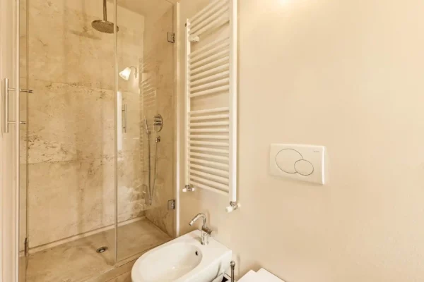 Rez-de-chaussée : entrée. Vestiaire. Salle de bains invités. Salon. Salle à manger. Cuisine donnant sur le jardin. Chambre individuelle. Salle de bains (douche). Salle de bains invités. Premier étage : 2 chambres doubles avec salle de bains privative (douche et baignoire séparée). Dans une aile séparée : chambre double avec salle de bains dédiée (douche). Les chambres de cet étage sont équipées de la climatisation. Sous-sol (avec entrée séparée) : buanderie.